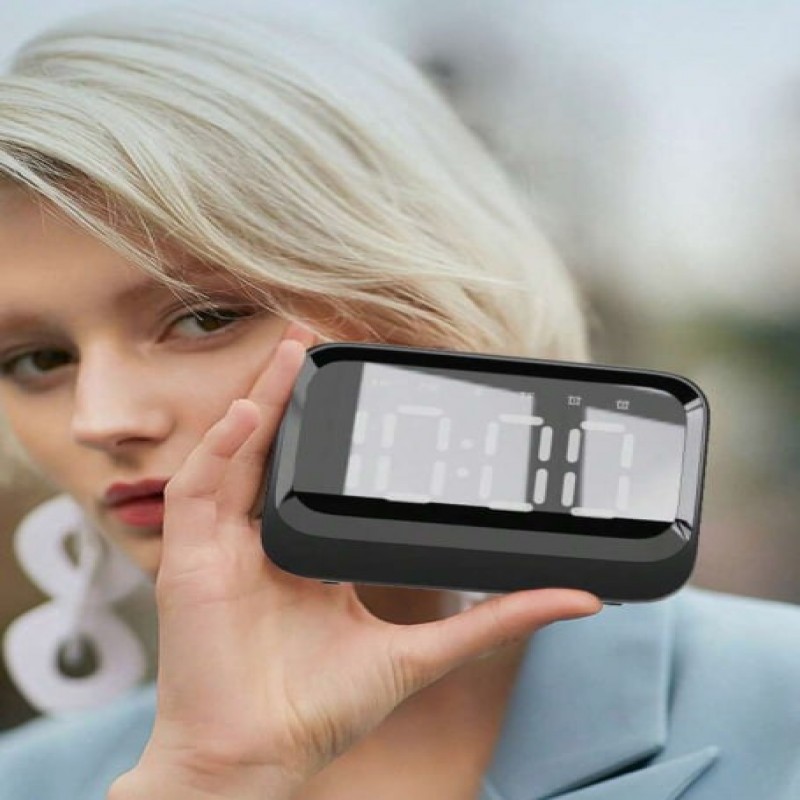 Reloj despertador portátil multifuncional con altavoz inalámbrico mini, radio FM, pantalla de hora y