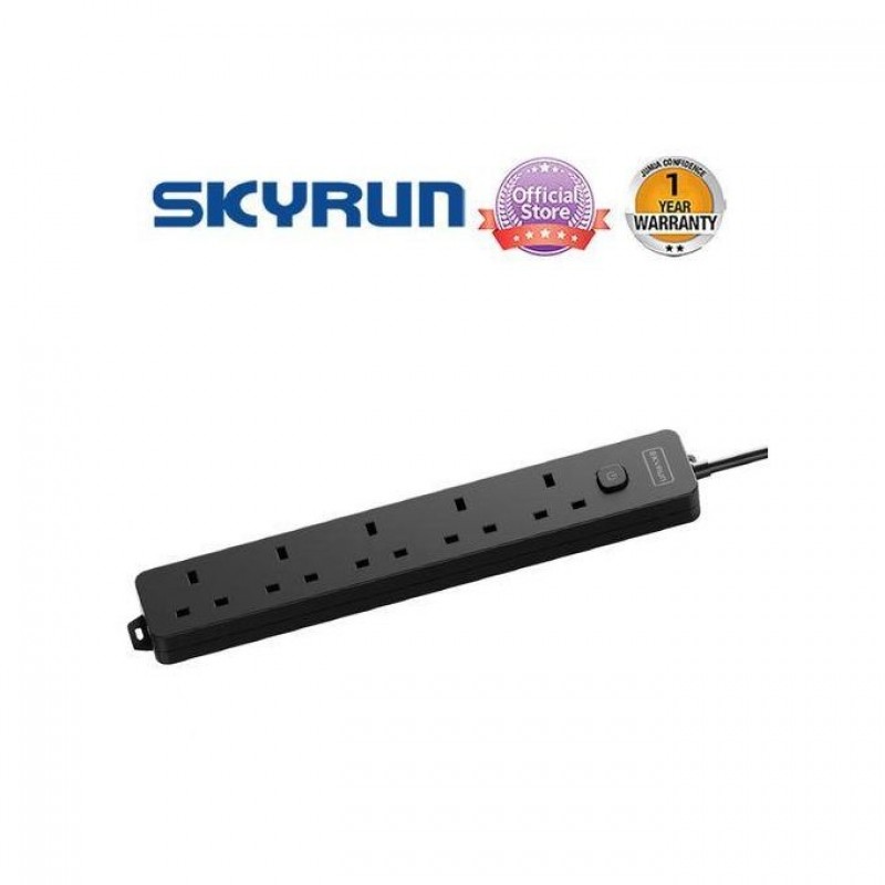 Skyrun 5 Sockets 2 Metre Cord Power Strip Extension Box-Black