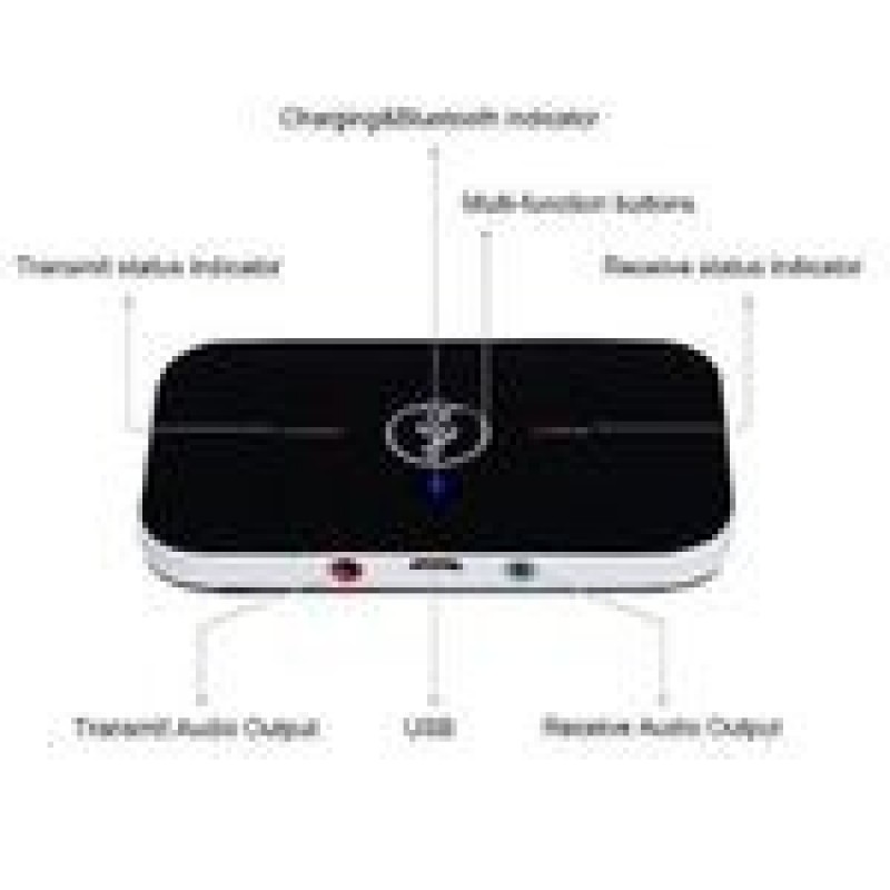 Wireless Audio Transceiver - Bluetooth 5.0 RCA, AUX 3.5mm Jack, Music Adapter, USB Dongle for Car, PC, TV, HeadphonesProduct Description1.Bluetooth Compatible: This Bluetooth audio adapter supports 3.5mm auxiliary audio and is also compatible with all smartphones, Bluetooth audio devices (Bluetooth headphones, Bluetooth speakers, etc.) and stereo devices with an audio input port. Press the button in the centre of the front panel and the receiver and transmitter will start pairing with the next Bluetooth device.2.TRANSCEIVER MODE: With the 2-in-1 design, you can send and receive all audio freely and easily with this wireless adapter. The transmitter allows TVs, AV receivers, radios and other audio devices to stream music to Bluetooth headphones or speakers; the receiver allows non-Bluetooth devices such as stereo receivers or home stereos to stream music wirelessly from your mobile phone/computer.3. Clear Sound Quality: A2dp supports voice prompts for high quality audio sound, provides you with a 9 metre operating range, and performs well, giving you a great experience when taking calls or watching late night programmes. To ensure clear sound, it is recommended that you do not use the 3.5mm Bluetooth transceiver while charging4.WIRELESS FUNCTION: Want to watch football/baseball/boxing/golf/nba late at night without waking anyone up? This is your best choice. The Bluetooth transmitter function wirelessly transmits audio to your TV's Bluetooth speakers or headphones, or to older media devices such as portable CD players that don't have Bluetooth capability. FUNCTION: 2-in-1 Bluetooth transmitter and receiver, as a Bluetooth audio transmitter, the b6 is designed for audio devices without Bluetooth functionality (such as mp3, mp4, TVs, computers, etc.).You can connect the bluetooth transmitter to audio devices without bluetooth function through the included 3.5mm audio jack, convert these audio devices to bluetooth-enabled audio devices and operate them with bluetooth headphones and speakers; as a bluetooth audio receiver, the b6 is designed for car audio systems and home audio. It can transform traditional car audio systems and home audio systems into Bluetooth-enabled systems and can be easily paired with Bluetooth-enabled smartphones, laptops, tablets and more.Specifications: Model: B6Bluetooth: V5.0Transmission distance: 10 metres / 33 feetUpgrade to battery-free version (powered by USB charging)Charging: Micro USB 5V/0.5AAudio port: 3.5mmColour: BlackMain unit size: 9.7*5.8*1.2cm/3.82*2.28*0.47 Package Includes:1 x Bluetooth Transmitter and Receiver1 x Audio Cable1 x USB Cable1 x User's Manual